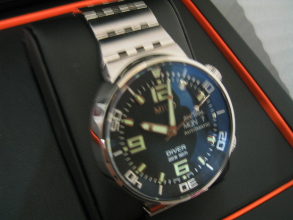 今天下班後, 終於跑去附近一間專賣瑞士錶的鐘錶店, 其實當時心中還沒有決定要購入哪一款, 因此只打算先去看看實際東西的樣子,只是在該店老闆娘的煽動之下,有了我的第一篇開箱文了,廢話不多說,看照片吧。