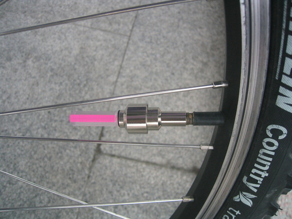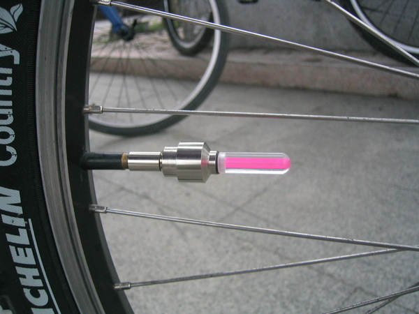 小白號上裝了車輪轉動就會發出紫色亮光的東東。
