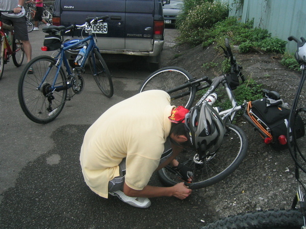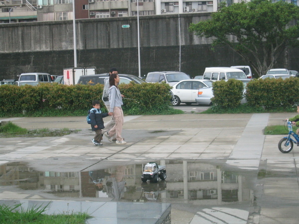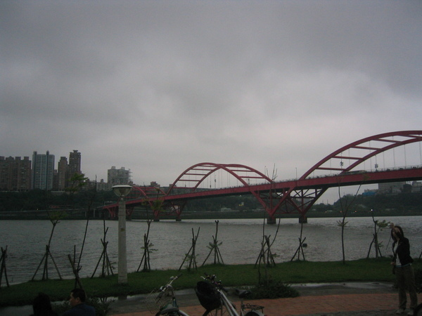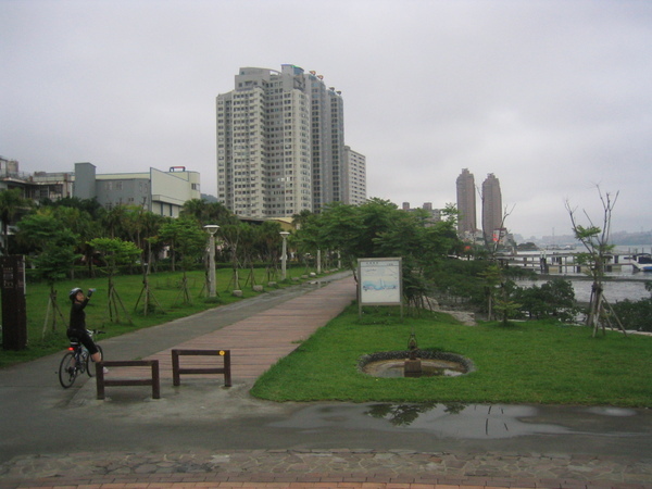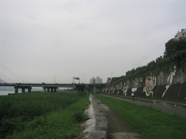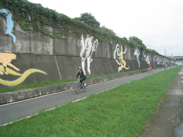 假日的河濱自行車道,車子都是滿多的,今天倒還好,可能是陰天的關係,雨,要下不下的。