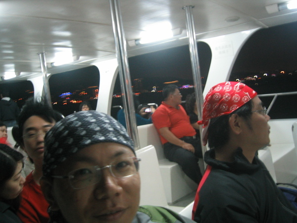 這二個人好像沒搭過船,高興得不得了,像個小孩似的。