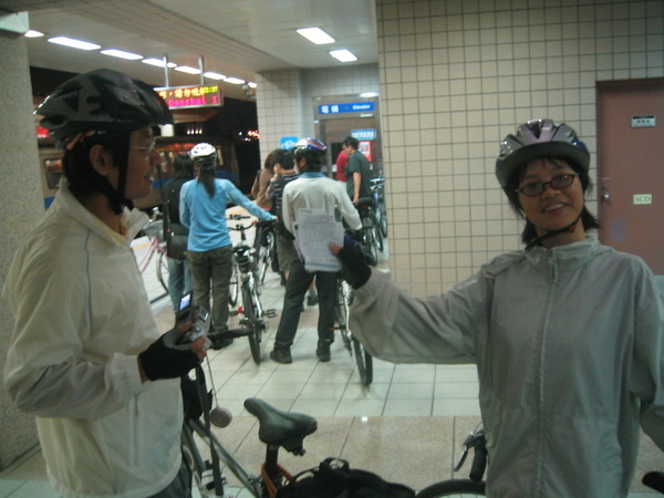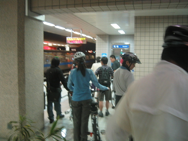 乖啊,電梯一次只裝得下二台。等電梯的時間,David說他早就可騎回去囉.....
